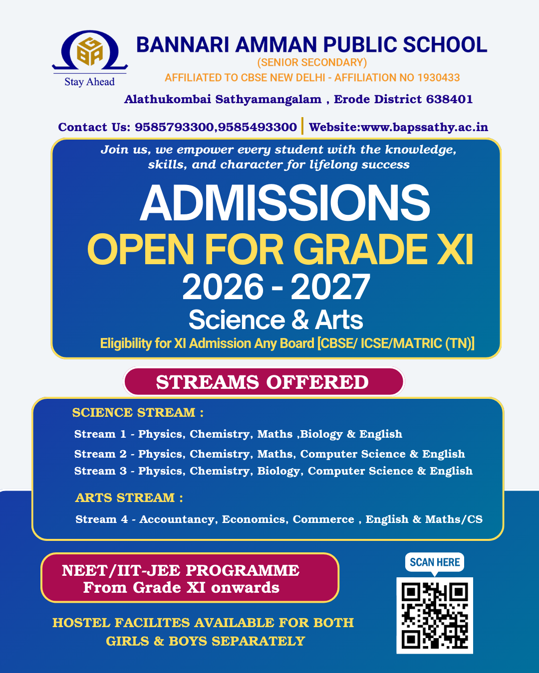 BAPS is a CBSE affiliated school, established by SVB foundation in 2012 at Alathukombai, Erode District of Tamilnadu owing to the deep desire and urge of the people of the locality. Our vision is of a high achieving multi institution educational context in which all young ones achieve their potential through high quality personalized learning that is designed to meet their individual needs.
